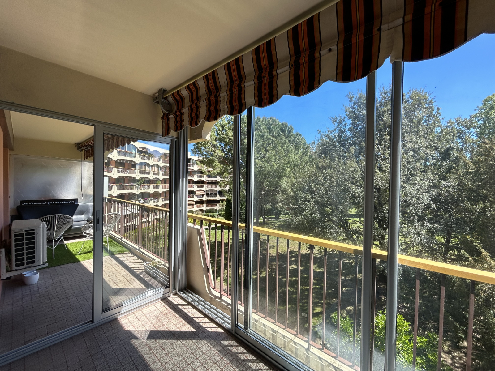 Il se compose d'une entrée, beau séjour climatisé de 21.41 m2, donnant sur une véranda de 6.21 m2 prolonge d'une terrasse de 9.41m2; la cuisine est indépendante, aménagée et équipée
